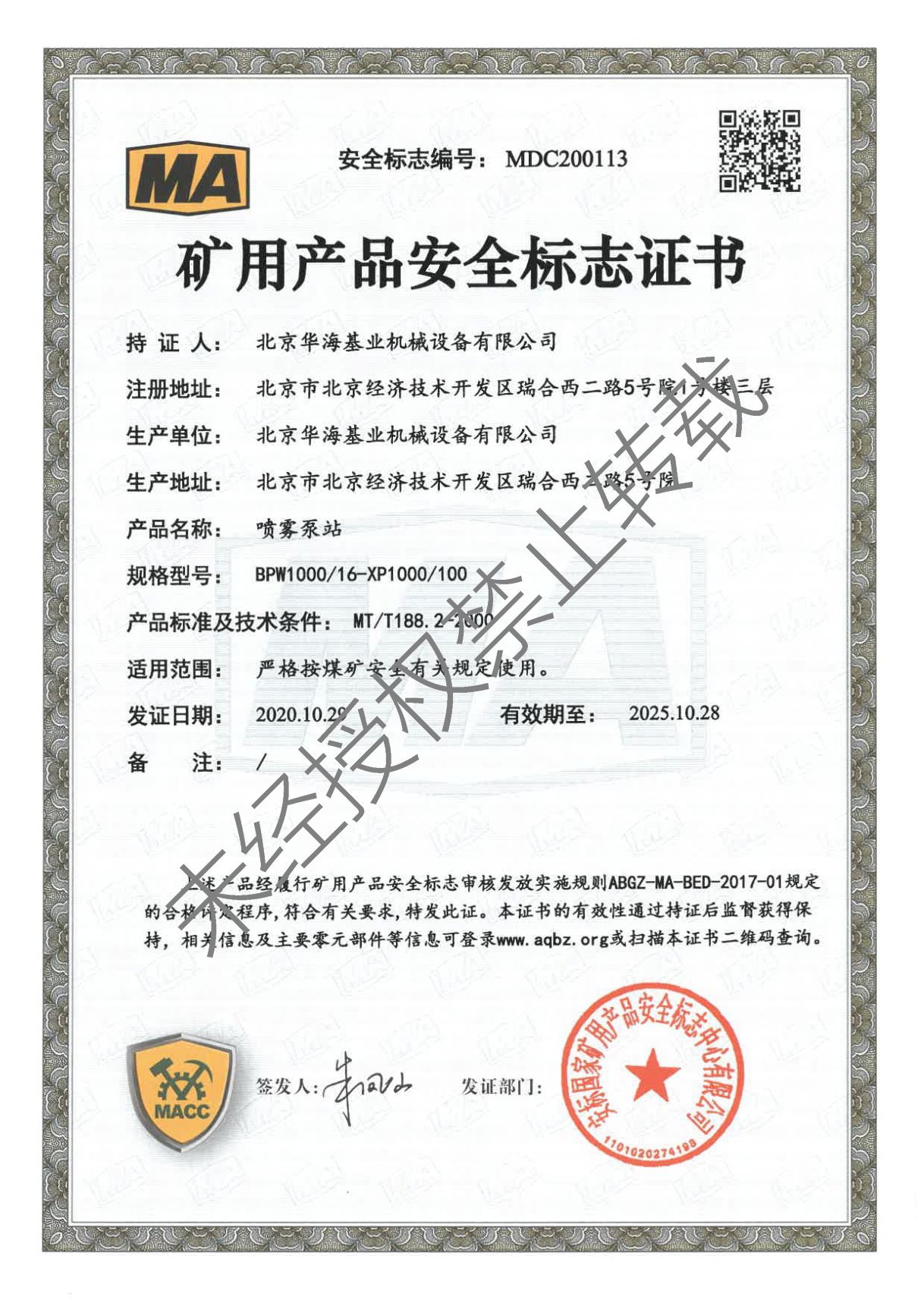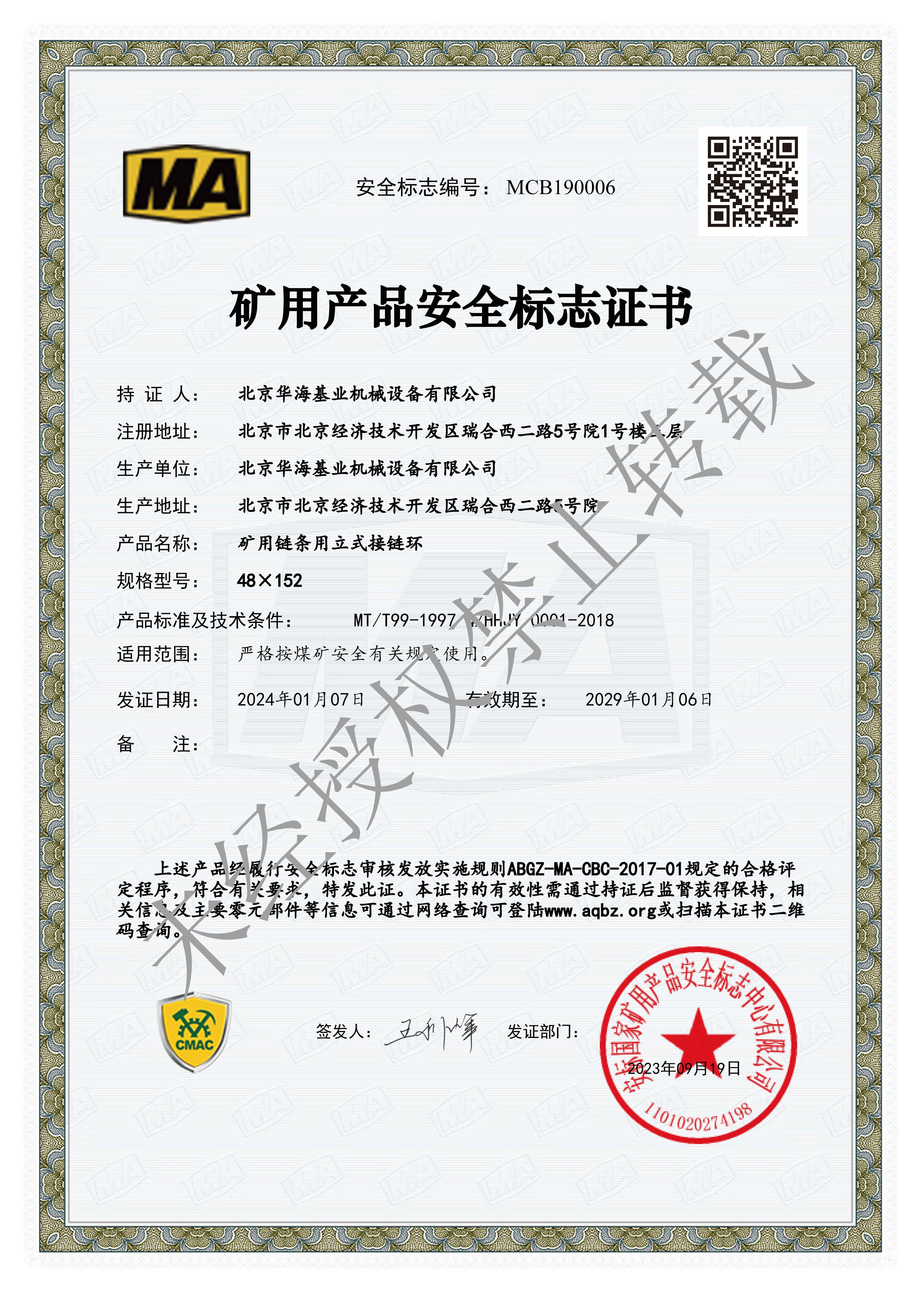 礦用產品安全標志證書
